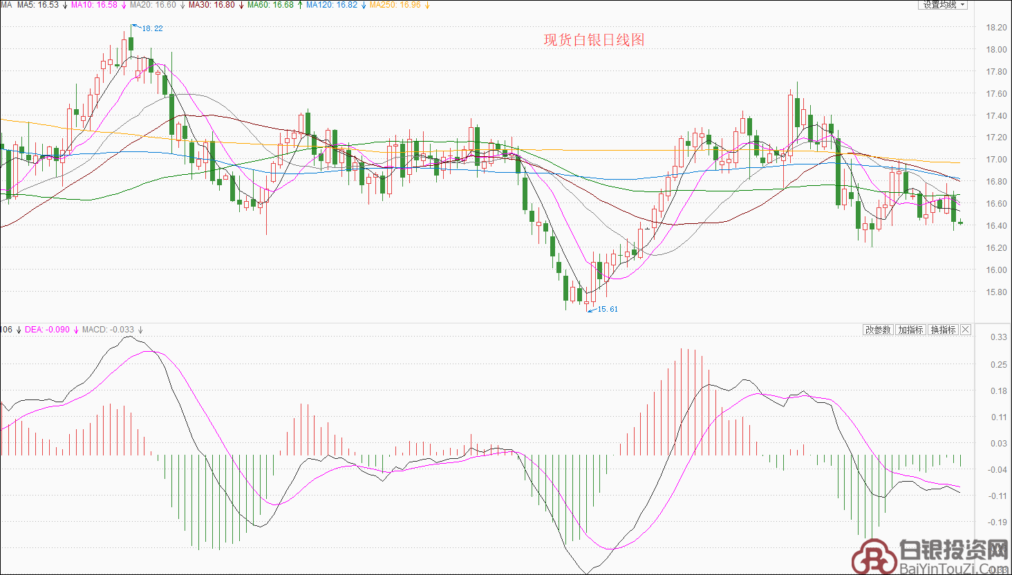 今日亚市盘中现货白银震荡下跌,目前录的16.569美元/盎司,跌幅0.54%。