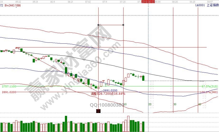 通过江恩理论系统趋势、时间、价格工具综合评判市场二星看多(五星评级标准)。大盘短周期15、30、60分钟走势图全部失守极反通生命线进入弱势,结合日线长期处于弱势通道,市场又一次大小周期进入寻底过程;空间方面,百分比延伸线零度位2862点失守,与前面低点2691之间仅有一道防线,即180度2772点,此线是7月上旬4次阳线的启动位,结合趋势判断,到达此线会有停留,距离前期低点较近,有打破试探的意味;时间方面是3、6号。综合结论是大盘处于弱势通道寻底过程,对于大多投资者休息为好,有技术实力支撑的短线选手,仓位也应控在3成以内,轻仓尝试保持盘感为主。
